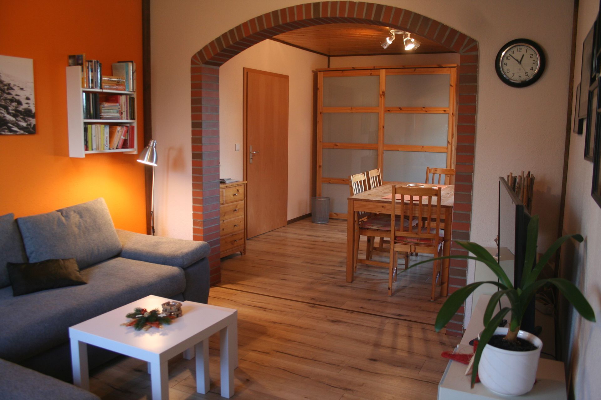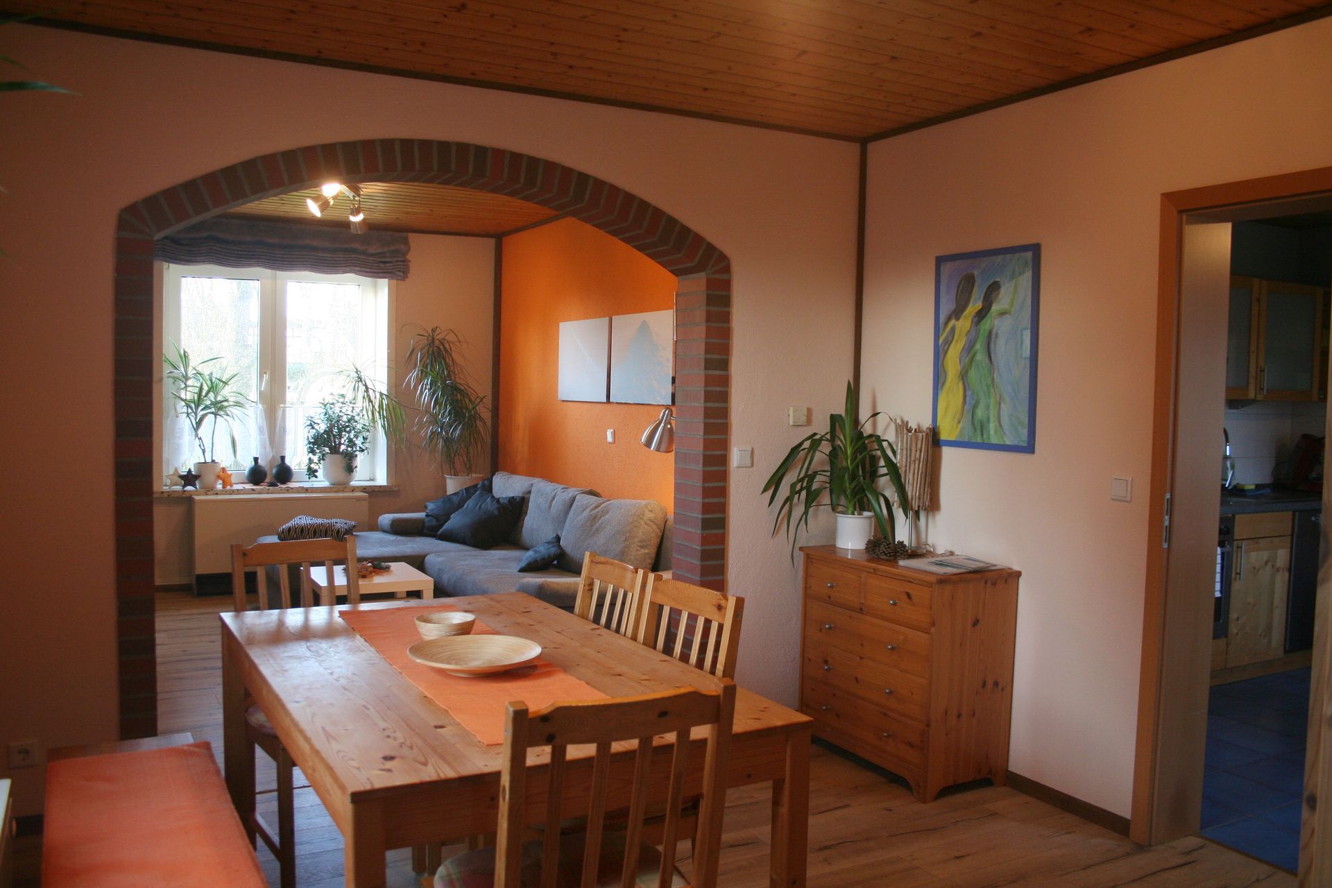geräumiges Esszimmer mit offenem Durchgang zum Wohnzimmer